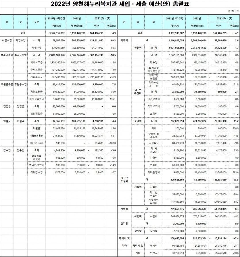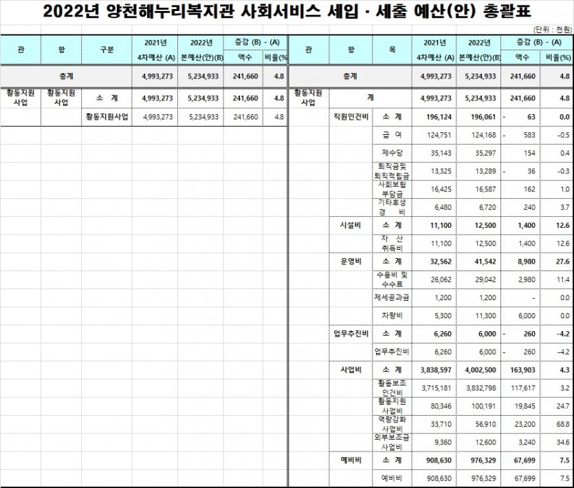 2022년 양천해누리복지관 세입세출 예산