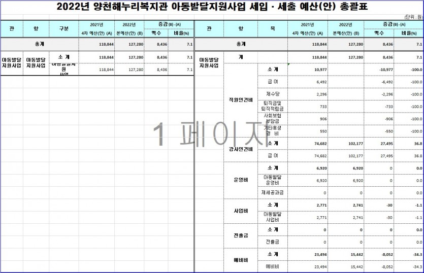 2022년 아동발달사업 세입세출 예산을 공지합니다.