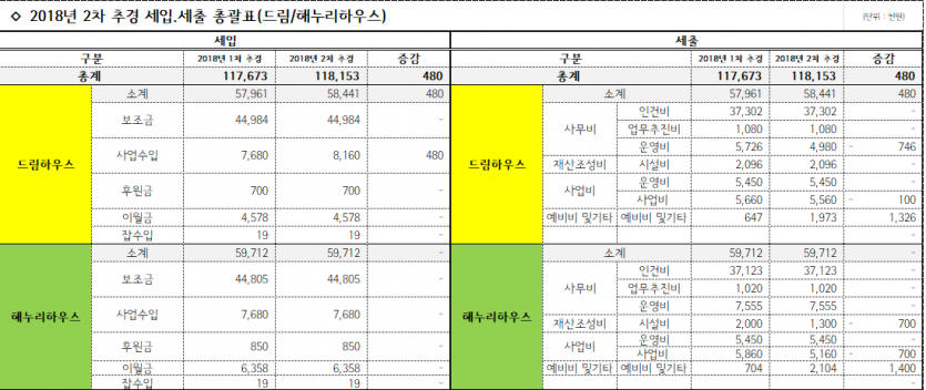 사회복지법인 및 사회복지시설 재무회계규칙 제10조에 의거 2018년 4차 추가경정예산을 공고합니다.