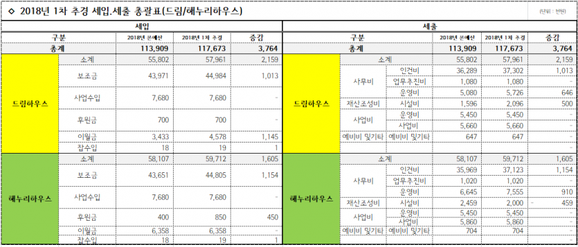 사회복지법인 및 사회복지시설 재무회계규칙 제 10조에 의거 2018년 1차 추가경정예산을 공고합니다.