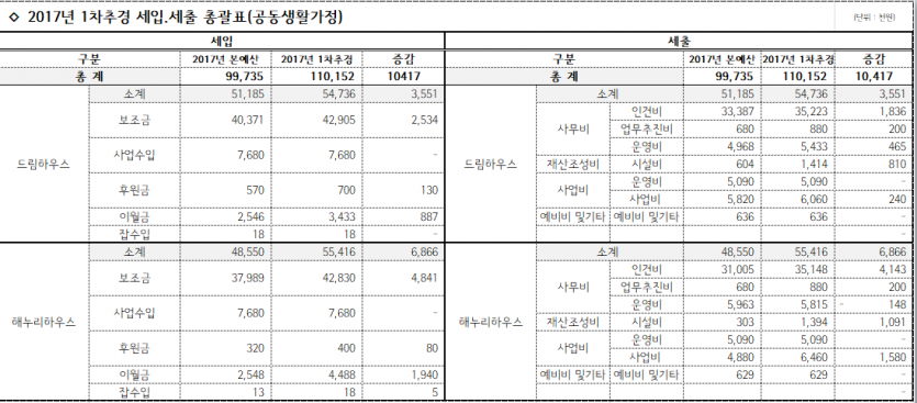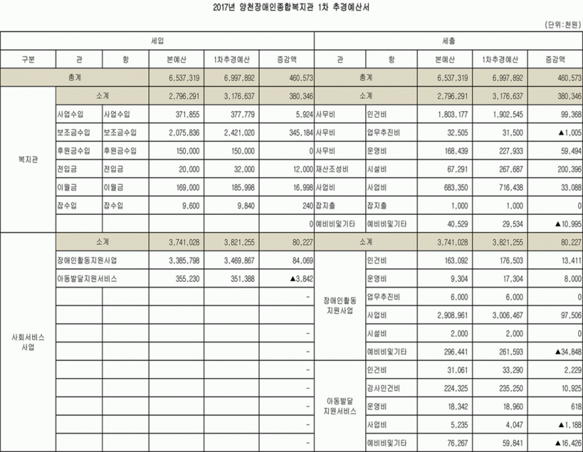 사회복지법인 및 사회복지시설 재무회계규칙 제10조에 의거 2017년 1차 추가경정예산을 공고합니다