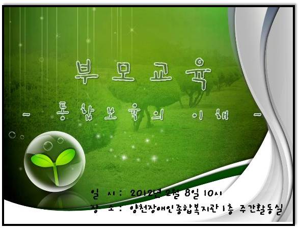 통합보육시설 입소를 준비하고 있는 아동의 부모님을 대상으로 ‘통합보육프로그램 안내 및 교사와 협력하기’란 주제로 복지관 1층 주간활동실에서 부모교육을 실시되었습니다.