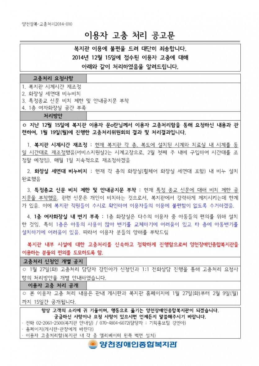 (양천장복_고충처리 2014-010) 고충처리 결과