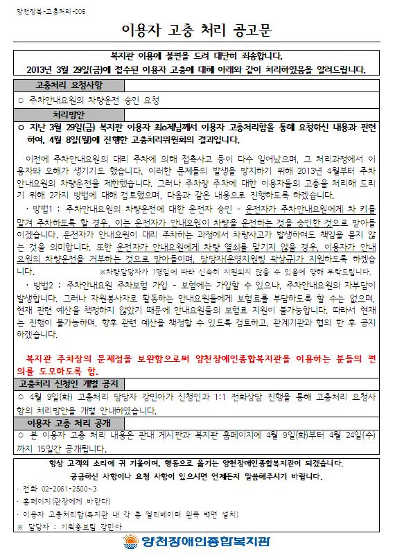 2013년 3월 29일(금)에 접수된 이용자 고충에 대해 아래와 같이 처리하였음을 알려드립니다.