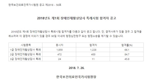 첫 장애인재활상담사 특례시험 합격률 69.5%