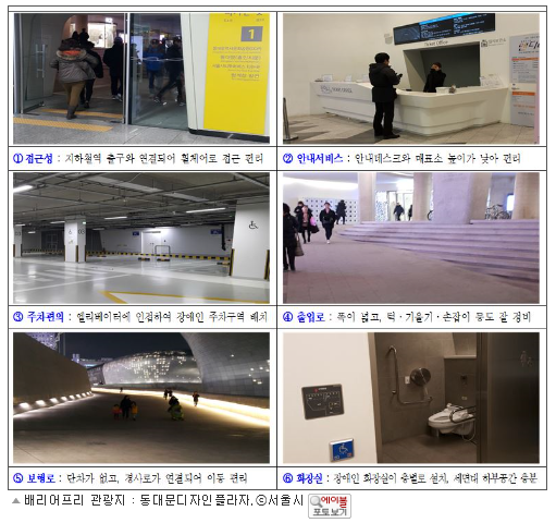 이와 관련해 시는 서울시 관광가이드북에 소개된 주요 관광지(120여 개)의 접근성 전수조사를 완료했다. 서울관광 홈페이지(http://www.visitseoul.net)와 모바일앱(itourseoul)에서도 픽토그램을 통해 접근가능성 정보를 제공할 계획이다.