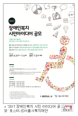 서울시복지재단은 시민들의 장애인가족복지에 관한 인식을 제고하고 창의적인 장애인복지사업을 발굴하기 위해 ‘2017 장애인복지 시민 아이디어 공모’를 7월 4일까지 진행한다.