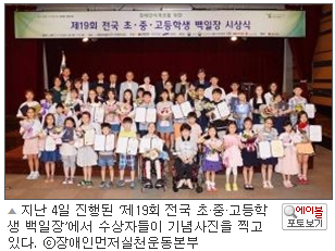 장애인먼저실천운동본부가 지난 5일 서울 대방동 여성플라자 국제회의장에서 ‘제19회 전국 초·중·고등학생 백일장’ 시상식을 개최했다.