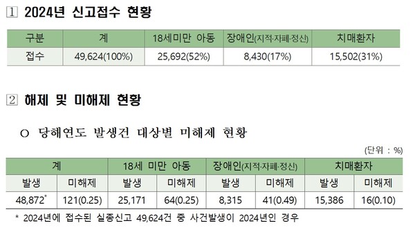 2024년에 접수된 4만9624건 중 2024년에 발생한 건은 4만8872건으로, 이중 4만8751명을 찾았고, 121명은 아직 찾지 못했다.