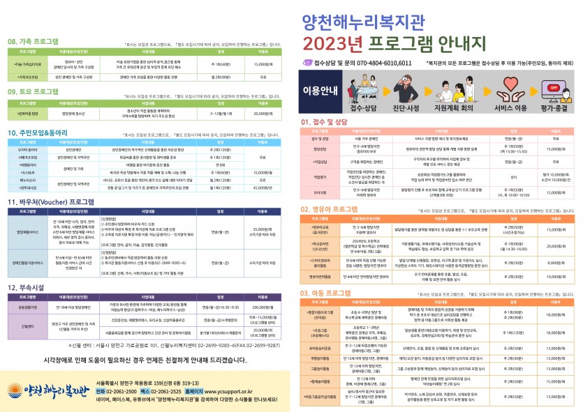 2023년 양천해누리복지관 프로그램 안내