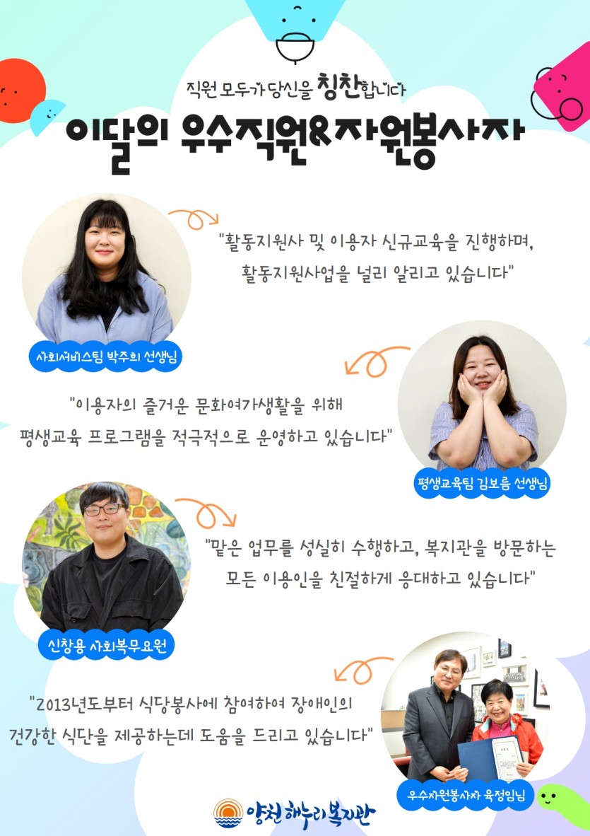 양천해누리복지관 2023년 1분기 우수직원을 소개합니다!