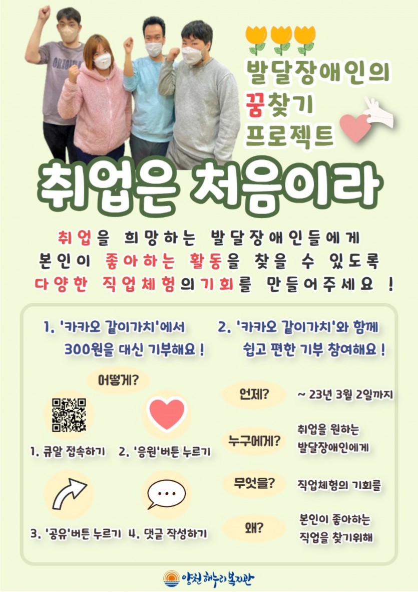 발달장애인의 꿈찾기 프로젝트 '취업은 처음이라' 카카오같이가치 모금함 개설