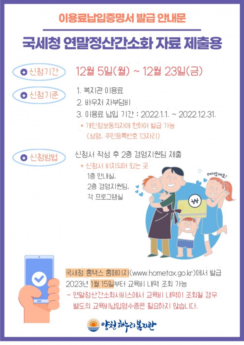 2022년 이용료(교육비)납입증명서 발급 안내(국세청 연말정산간소화 자료 제출용)