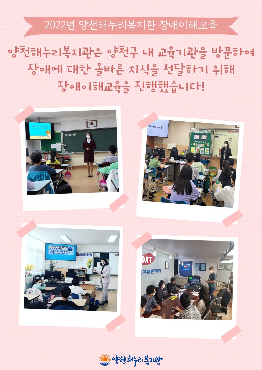 2022년, 양천해누리복지관은 양천구 내 교육기관을 방문하여 장애에 대한 올바른 지식을 전달하기 위해 장애이해교육을 진행했습니다!