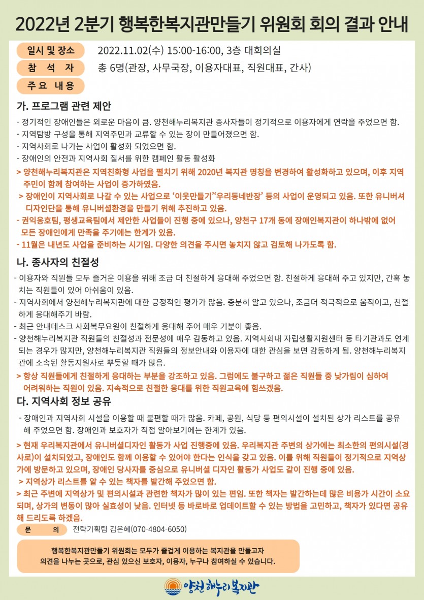 2022년 행복한복지관만들기 위원회 2차 결과 안내