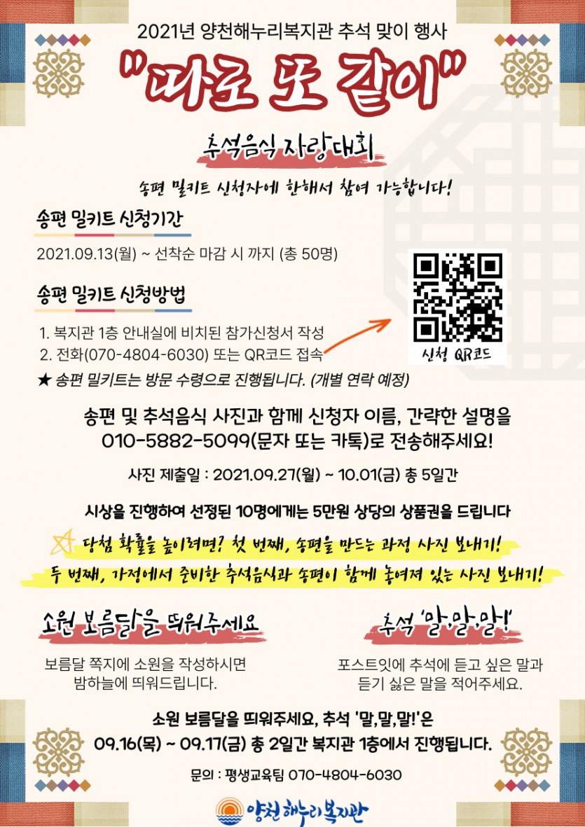 2021년 추석을 맞이하여, 추석음식 자랑대회 "따로 또 같이"를 진행합니다!