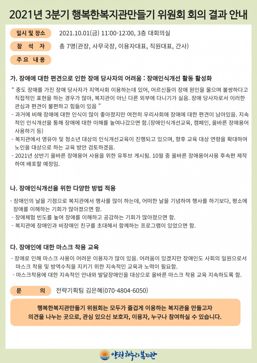 2021년 행복한복지관만들기 위원회 3차 결과 안내