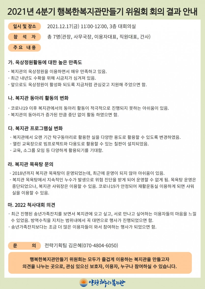 2021년 행복한복지관만들기 위원회 4차 회의 결과 안내