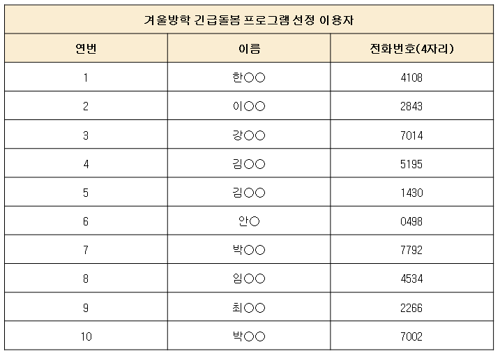 2021년 겨울방학 긴급돌봄프로그램 이용자 선정안내