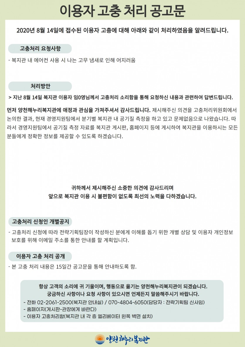 2020년 8월 14일에 접수된 이용자 고충 결과를 아래와 같이 안내드립니다.