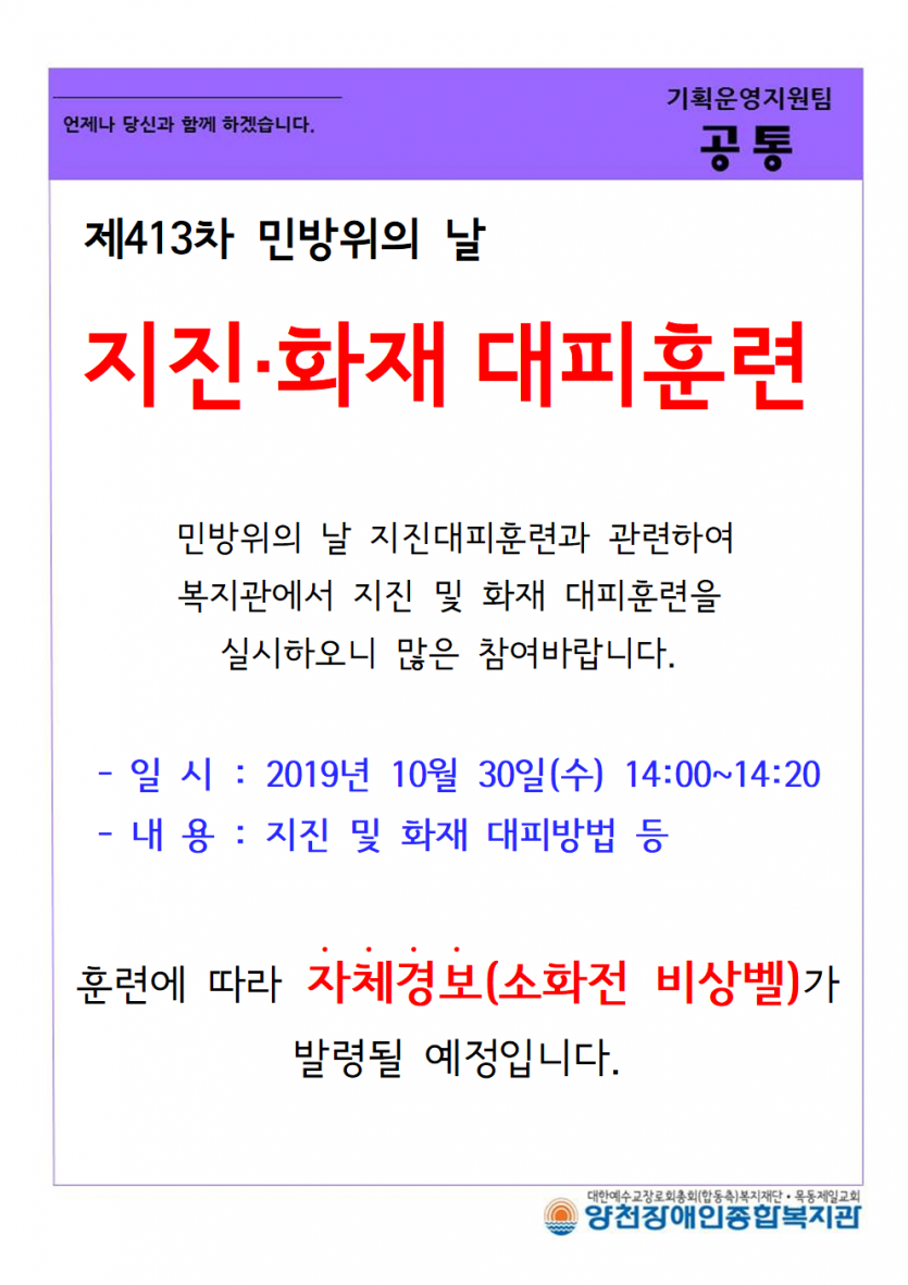 지진,화재 대피훈련 안내
