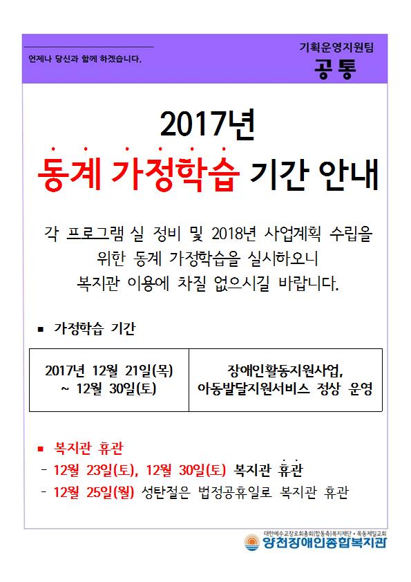 2017년 동계가정학습기간안내