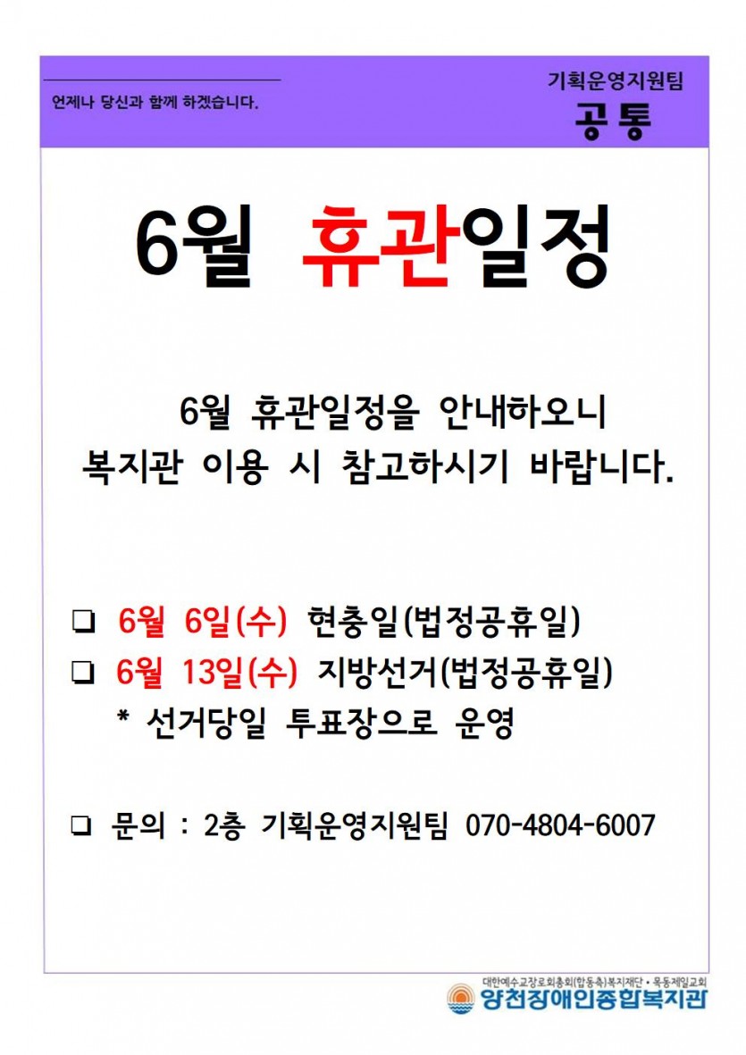 6월 복지관 휴관 안내