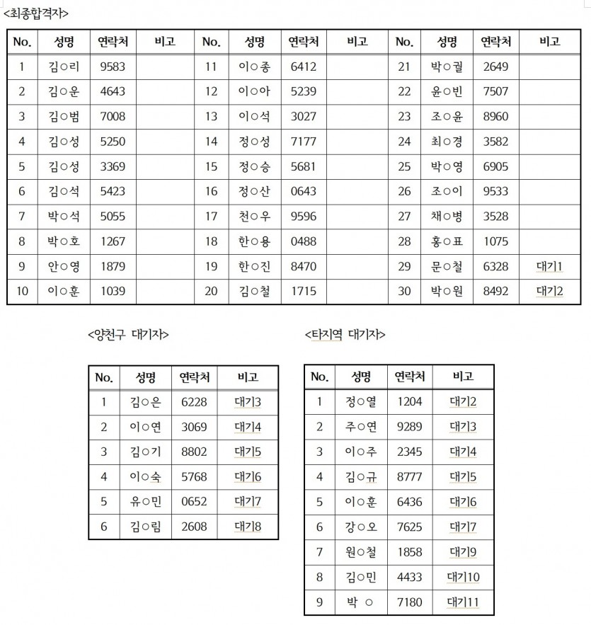 [양천구발달장애인평생교육센터 이용자 최종선발 명단]