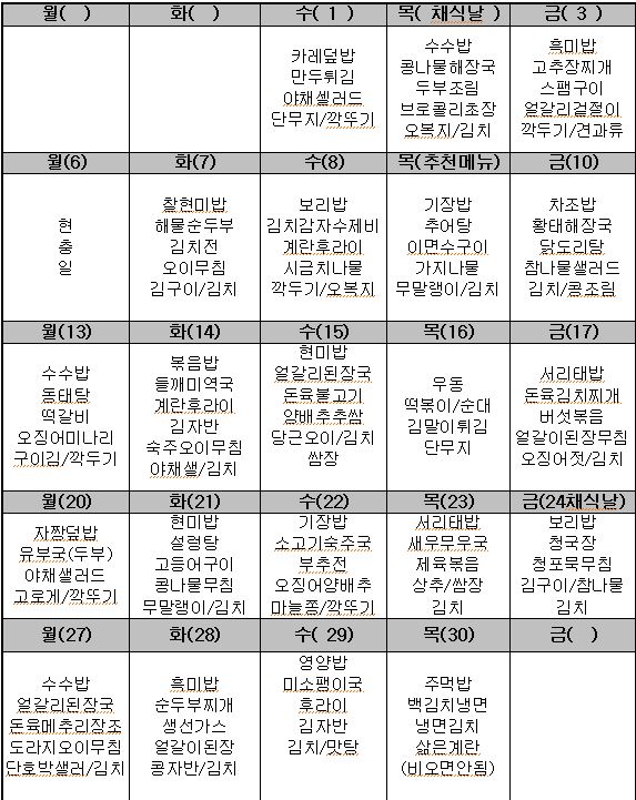 ※ 식자재 수급 사정에 따라 변경 될 수 있습니다.
