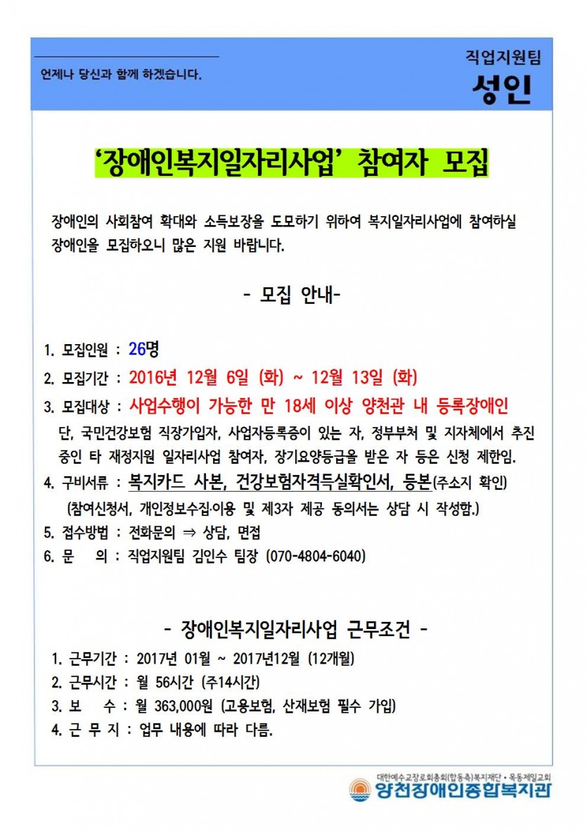 - 장애인복지일자리사업 근무조건 -
