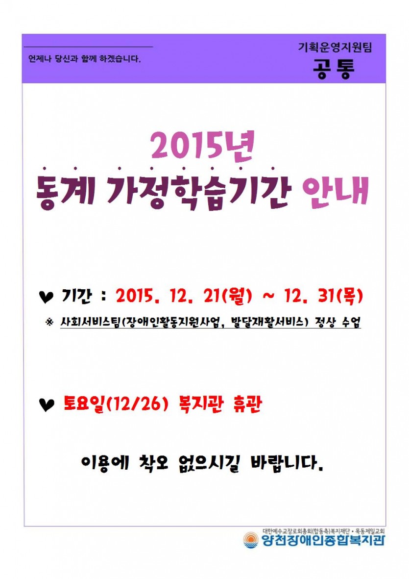 2015년 동계가정학습기간안내