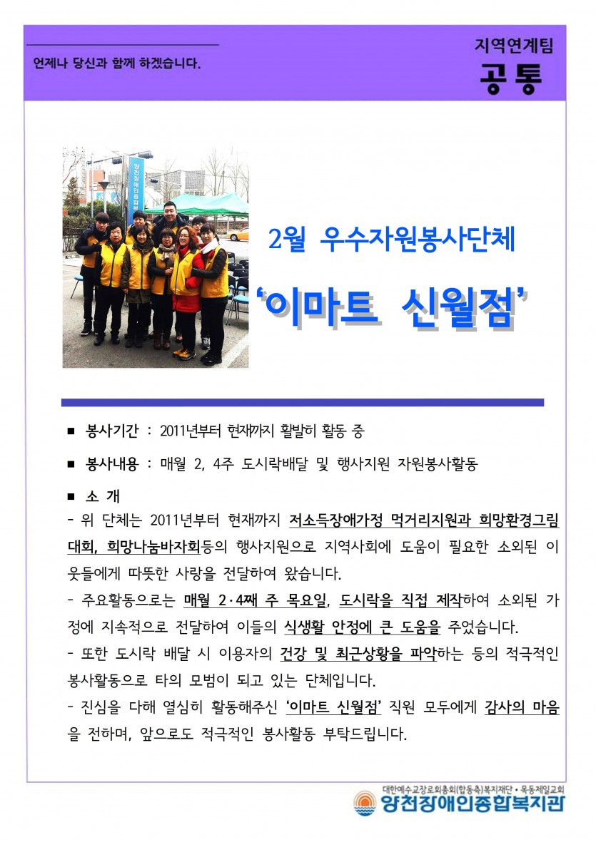 2월 우수자원봉사단체 ‘이마트 신월점’