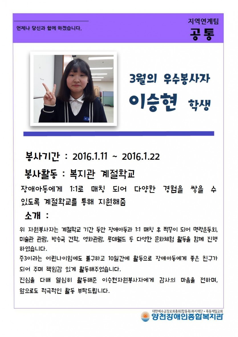 진심을 다해 열심히 활동해준 이승현자원봉사자에게 감사의 마음을 전하며,    앞으로도 적극적인 활동 부탁드립니다.