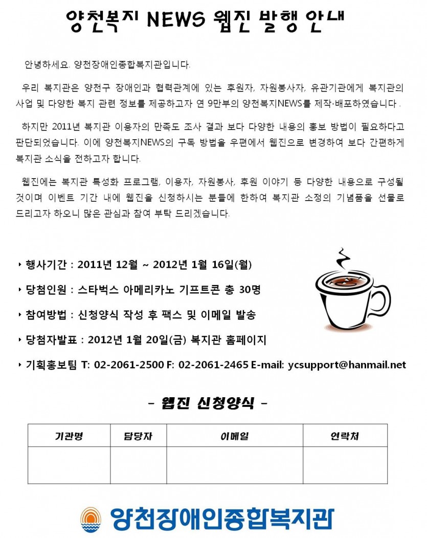 2012년 양천복지 NEWS 웹진 발행 맞이 축하 이벤트