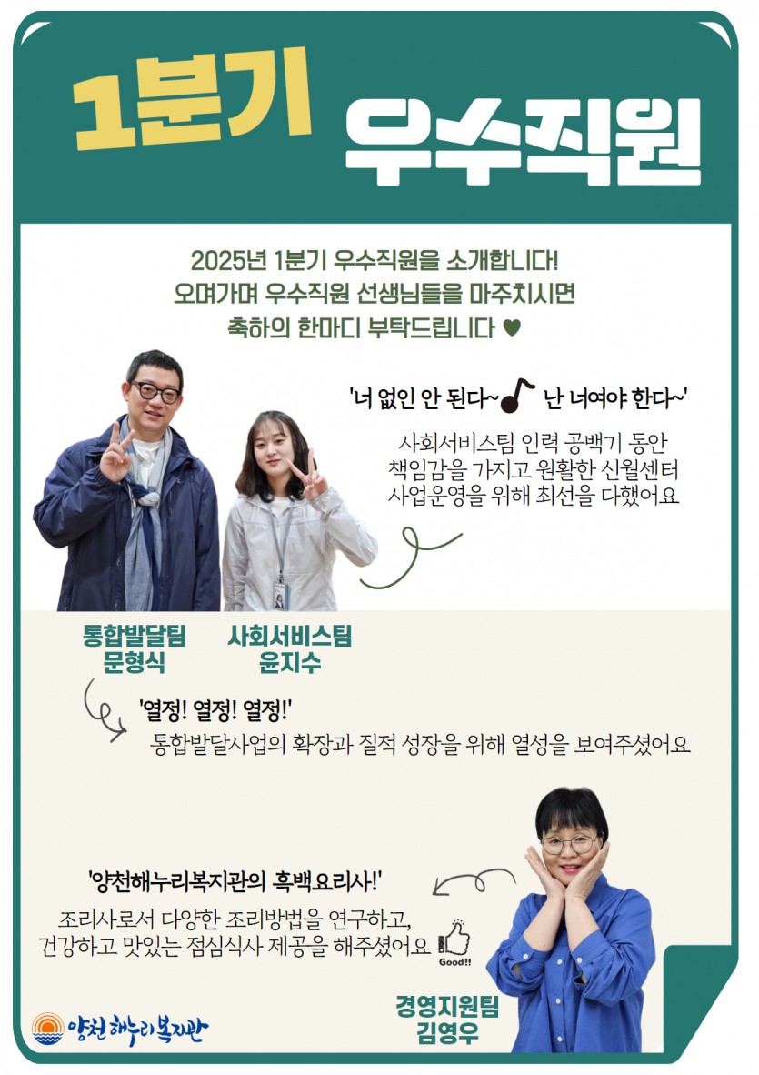 양천해누리복지관 2025년 1분기 우수직원을 소개합니다!