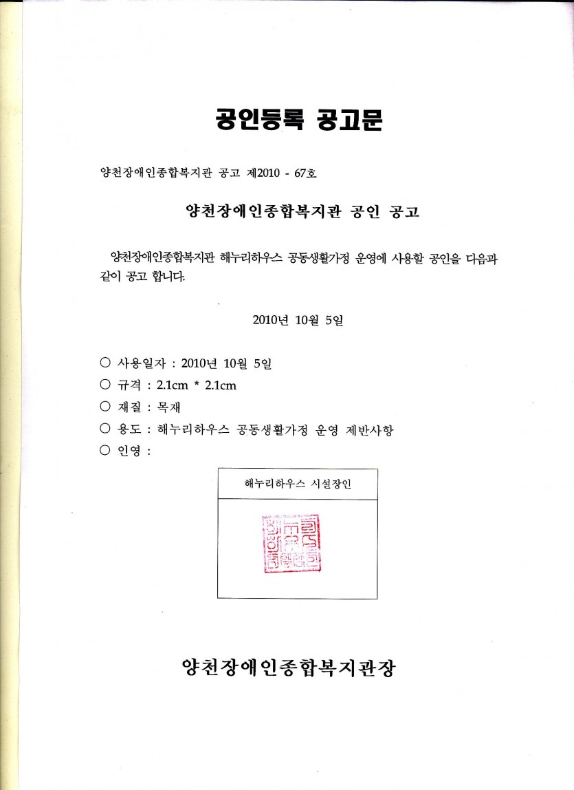 해누리하우스 장애인공동생활가정 공인등록 공고