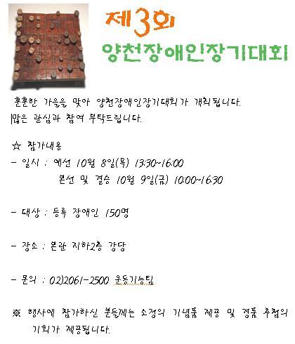 양천장애인장기대회가 열립니다.