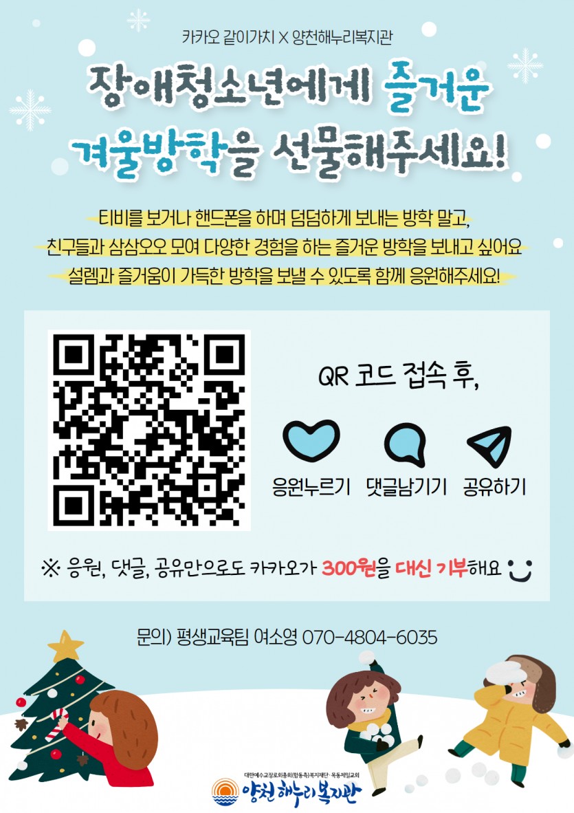 장애 청소년에게 즐거운 겨울방학을 선물해주세요!