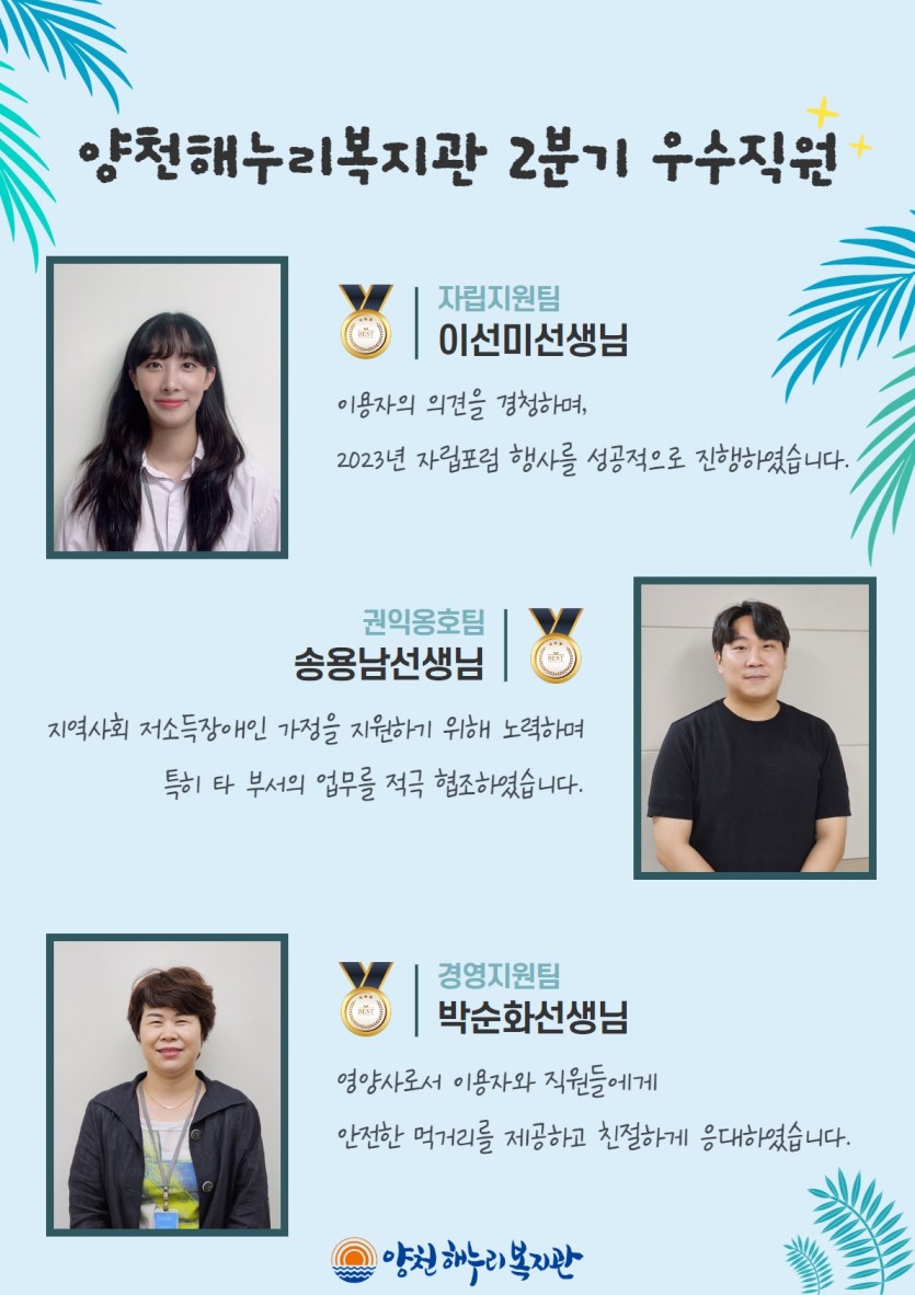 양천해누리복지관 2023년 2분기 우수직원을 소개합니다!