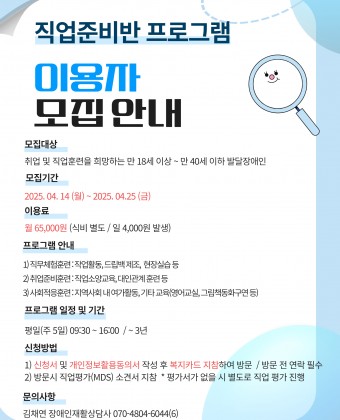 취업 및 직업훈련을 희망하는 만 18세 이상 ~ 만 40세 이하 발달장애인