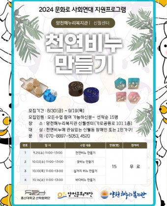 천연비누에 관심이 있는 신월동 장애인 또는 1인 가구