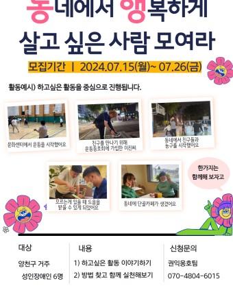 양천구 거주 장애인 및 보호자 5명(신월동 우대)