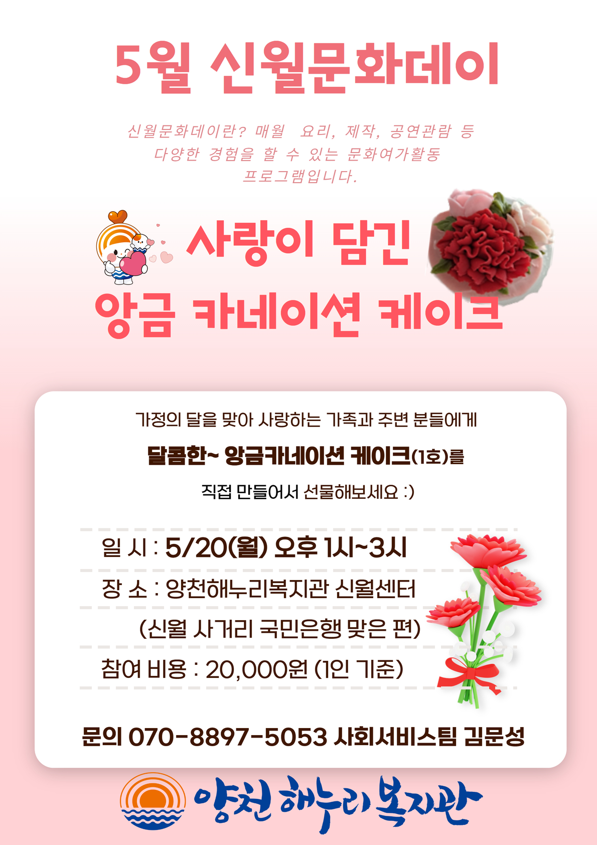 양천해누리복지관 신월센터에서 '신월문화데이' 5월 참여자를 모집합니다!