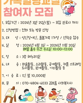 가족힐링교실 참여자 모집