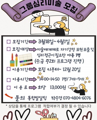 그룹심리미술 참여자 모집 안내