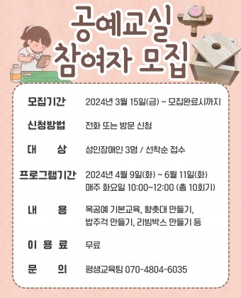 [모집 마감] 공예교실 참여자 모집