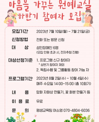 2023년 원예교실 하반기 프로그램 참여자 모집 안내