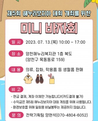 제5회 해누리보치아 대회 개최를 위한 "미니바자회"