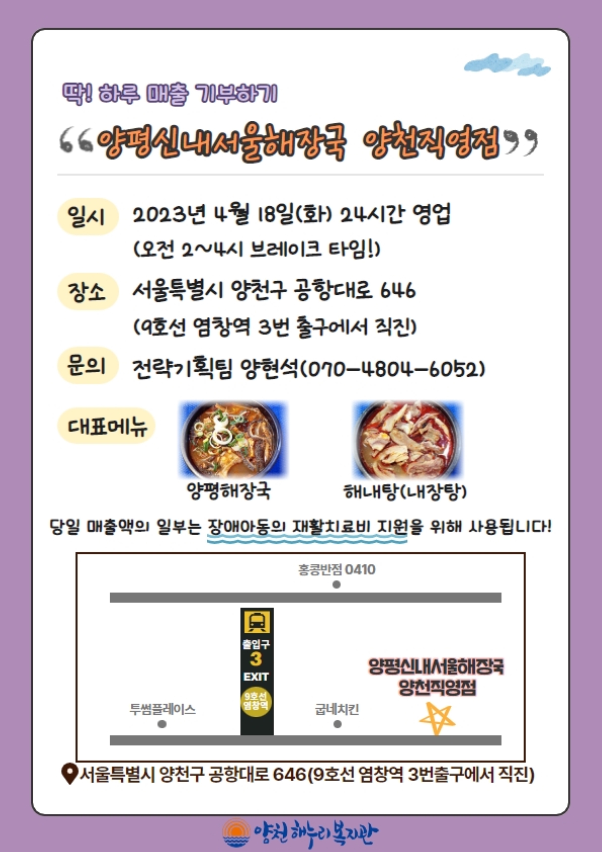2. 장소 : 서울특별시 양천구 공항대로 646(9호선 염창역 3번 출구에서 직진)