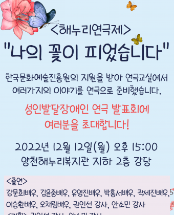 해누리연극제 '나의 꽃이 피었습니다' 안내